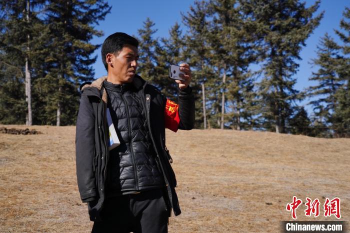 圖為桑杰加用手機記錄自己巡護的林場。 馬銘言 攝