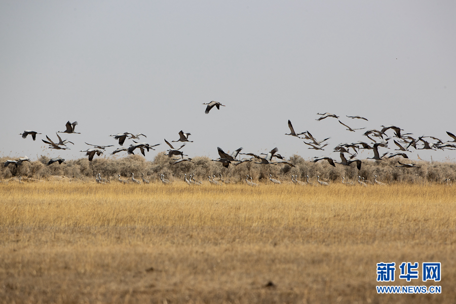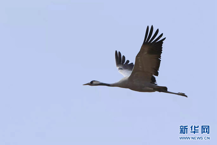 攝影愛好者在都蘭縣巴隆鄉境內拍攝到的灰鶴。新華網 松太加 攝