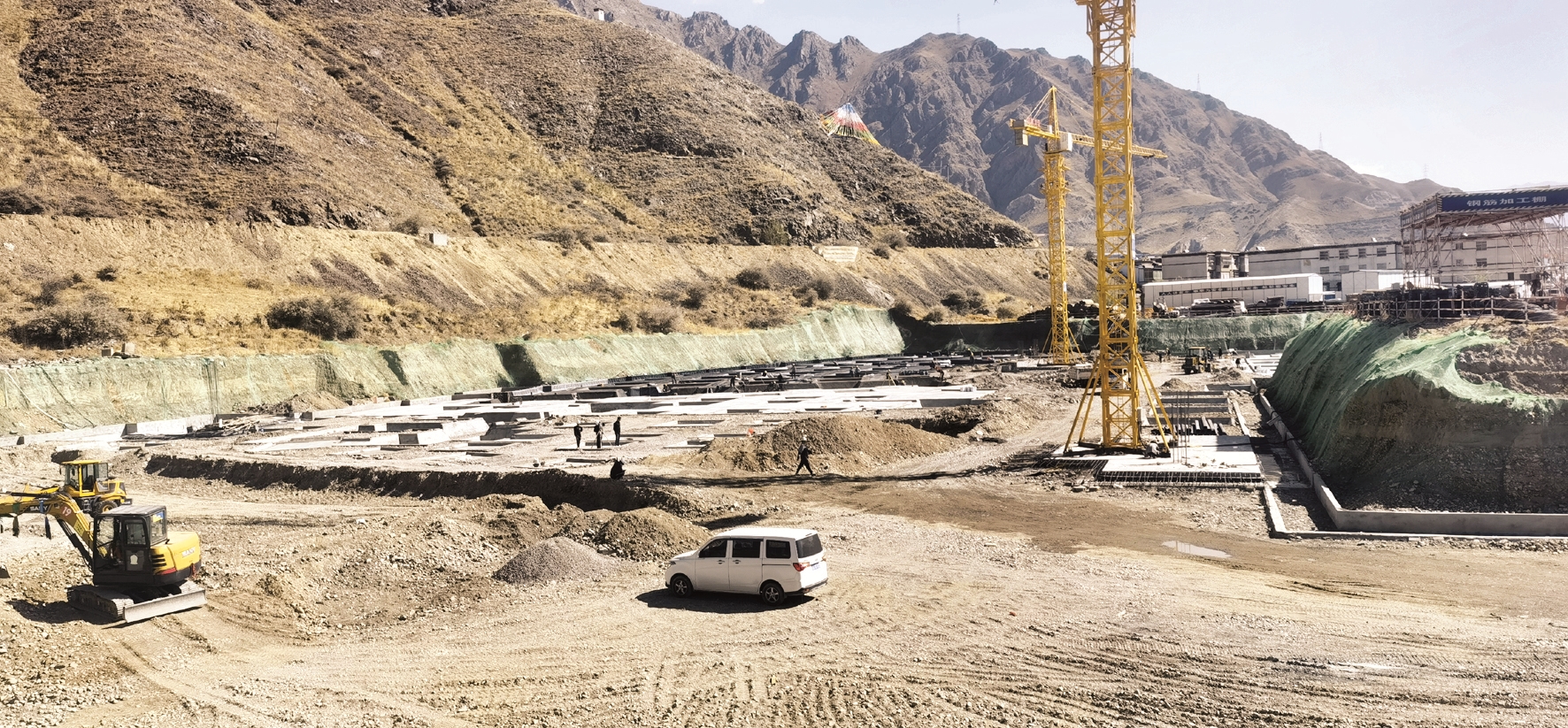 圖為堆龍德慶區民族團結主題公園一期施工現場,施工人員正進行地下車庫、游泳館等的基坑作業。 拉薩融媒記者 楊 璐攝