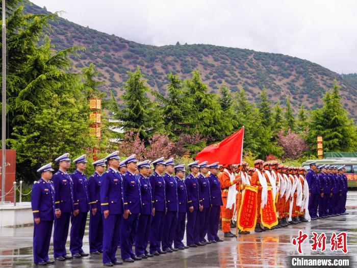 林芝市森林消防支隊營區人員列隊歡迎駐防分隊歸來。 李國燾 攝