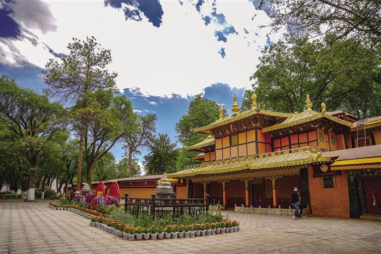 走進羅布林卡,園內樹木茂密、鮮花叢生,人們在欣賞風景的同時游覽于各具特色的藏式宮殿之間,感受歷史的變遷。羅布林卡也是絕佳的賞花地點,姹紫嫣紅的鮮花分布在羅布林卡的各個角落。