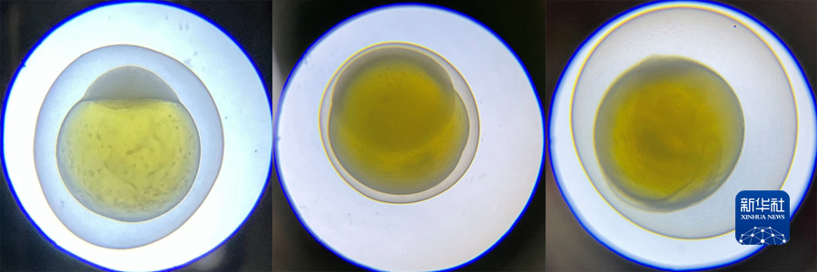 這是一張拼版照片,從左往右依次為6月13日至15日顯微鏡觀察的小頭裸裂尻魚受精卵發育情況。受訪者供圖
