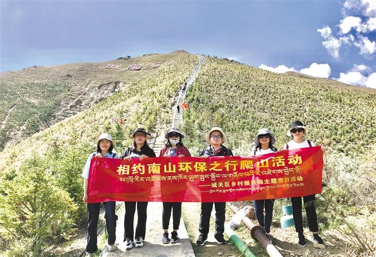 近日,拉薩市城關區鄉村振興局組織黨員干部赴南山公園開展了“相約南山環保之行”主題黨日活動,踐行“綠水青山就是金山銀山”的理念,在登山過程中,拾撿散落和遺留的礦泉水瓶、塑料袋等垃圾,為南山的環保工作貢獻力量。
