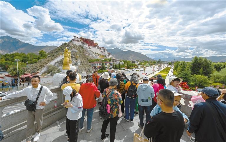 圖為游客在布達拉宮觀景臺欣賞美景。記者 旦增蘭澤 攝