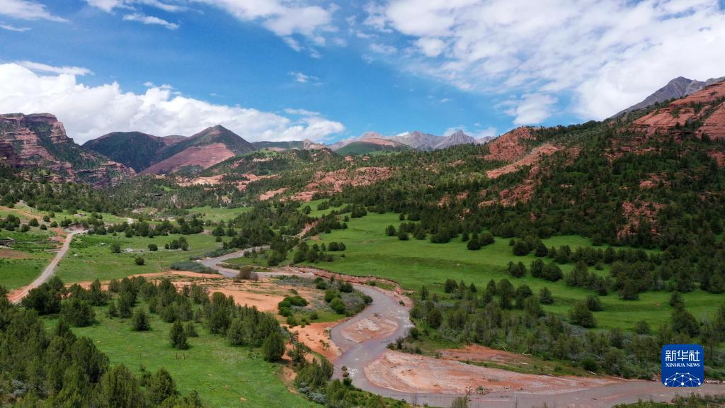 這是在青海省玉樹藏族自治州雜多縣境內拍攝的昂賽大峽谷一角(6月29日攝,無人機照片)。新華社記者 張宏祥 攝