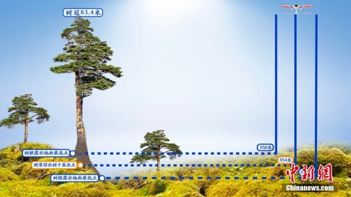 中國“第一高樹”紀錄刷新 83.4米黃果冷杉等身照首發