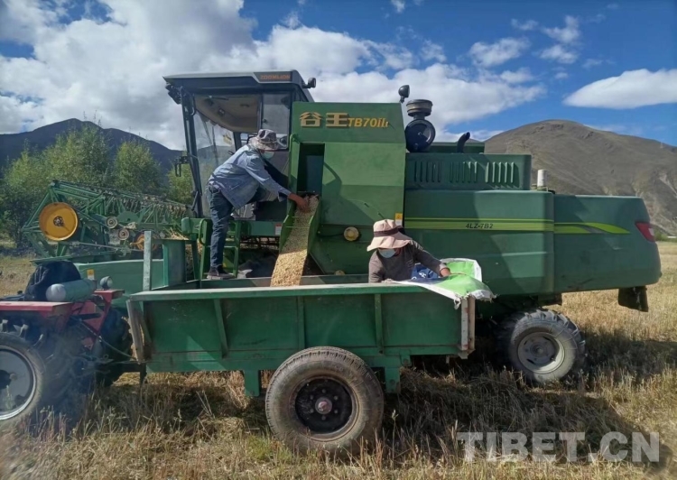 圖為國家牧草產業技術體系拉薩綜合試驗站曲尼帕基地燕麥種子秋收搶收工作(海拔3760米)