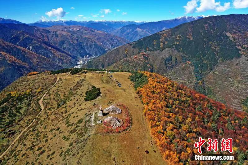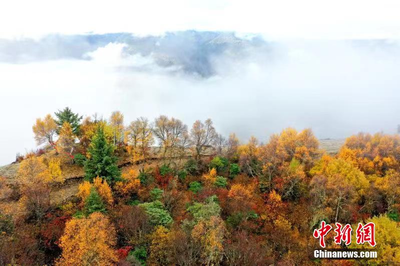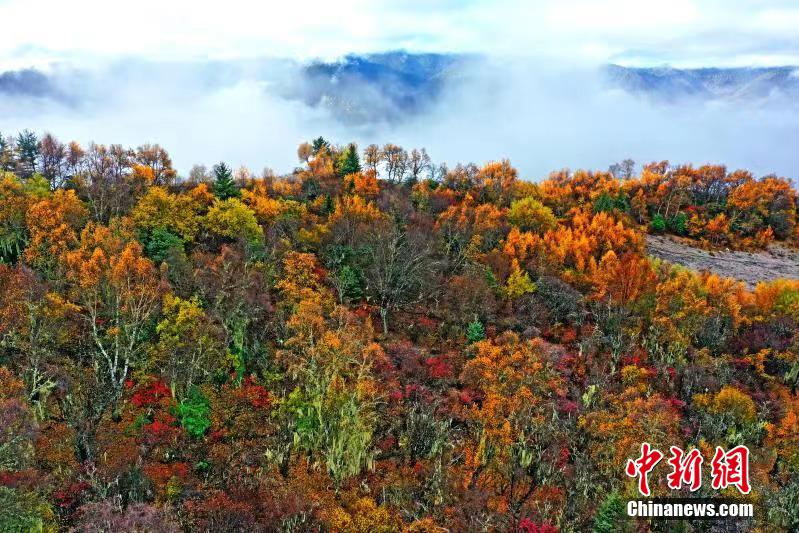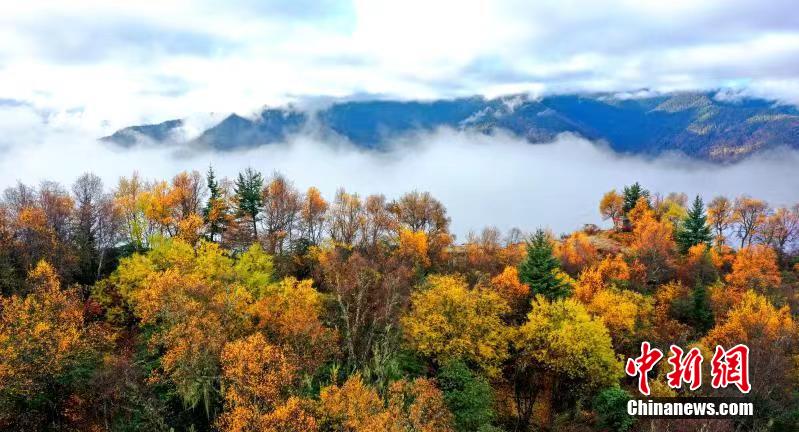 深秋時節,四川馬爾康市馬爾康鎮阿底村賽馬山迎來彩林觀賞的最佳季節。放眼望去,海拔3500米的賽馬山上彩林連綿延伸至茫茫云海,遠方雪山四面環繞,宛如仙境一般。阿壩州文體旅游局供圖