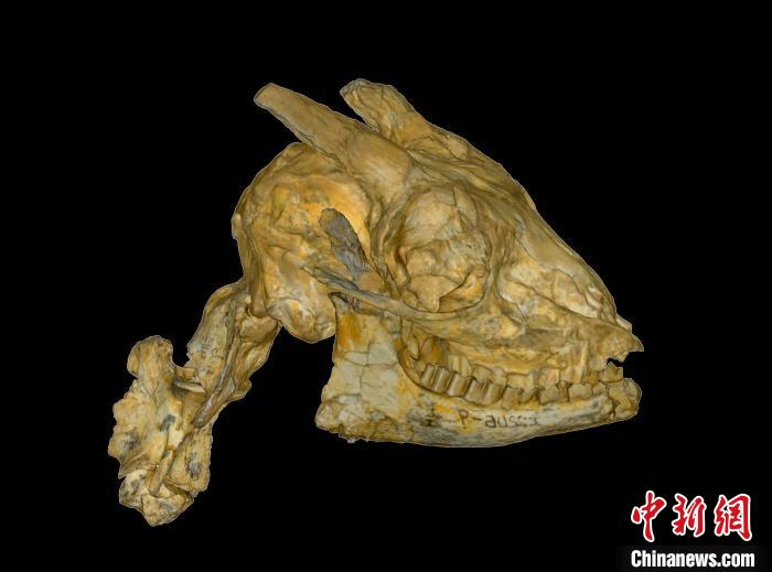 鄧氏臨夏羚的頭骨和頸椎化石標本。 中科院古脊椎所 供圖