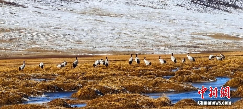 11月7日,記者從青海隆寶國家級自然保護(hù)區(qū)管理站獲悉,日前,隆寶灘黑頸鶴開始集群陸續(xù)遷往越冬地,開啟遷徙之旅。據(jù)介紹,隆寶灘黑頸鶴于每年10月初開始集群,10月中旬黑頸鶴陸續(xù)離開,一直持續(xù)至12月初越冬遷徙結(jié)束。遷徙黑頸鶴主要有保護(hù)區(qū)繁殖種群和遷徙停歇種群兩部分組成。圖為隆寶灘內(nèi)的黑頸鶴。圖/文:才仁羅松 李江寧