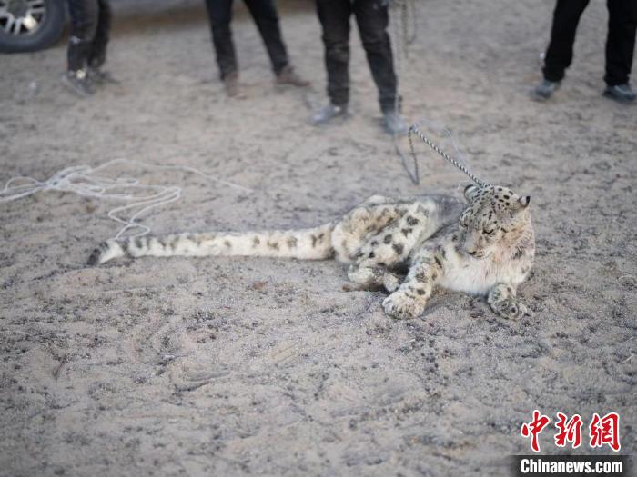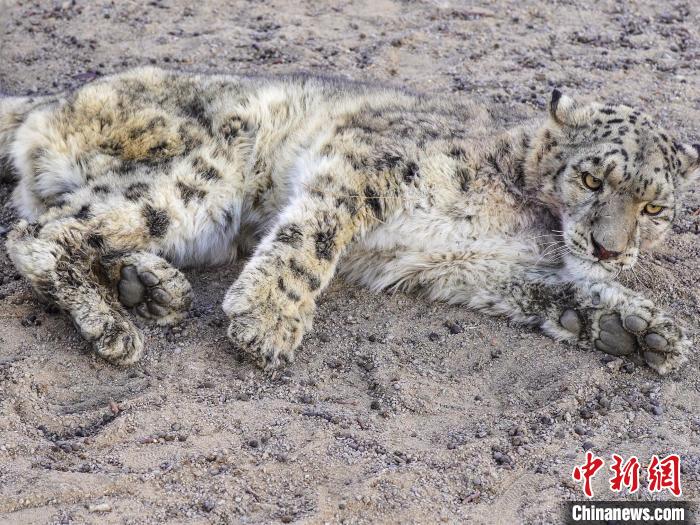 據駐村工作隊工作人員鄭殿之介紹,這只雪豹吃飽喝足后仍“賴在”羊圈,當被牧民發現后,佯裝虛弱。被捕捉后,工作人員檢查無傷后,便將雪豹放歸了自然。