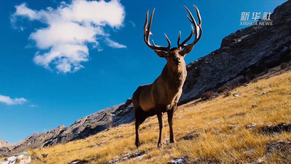 青海海西:上百只白唇鹿現身柏樹山