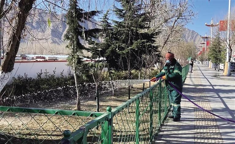 潔達園林公司副總經理次仁平措介紹:“近日,我們的工作人員已開始對城區綠化植被、行道樹和公園苗木進行澆灌。此次冬季灌溉工作,主要采取人工噴灑及車輛澆灌相結合的方式,將解決大型噴灑設備無法全面澆灌的問題。”