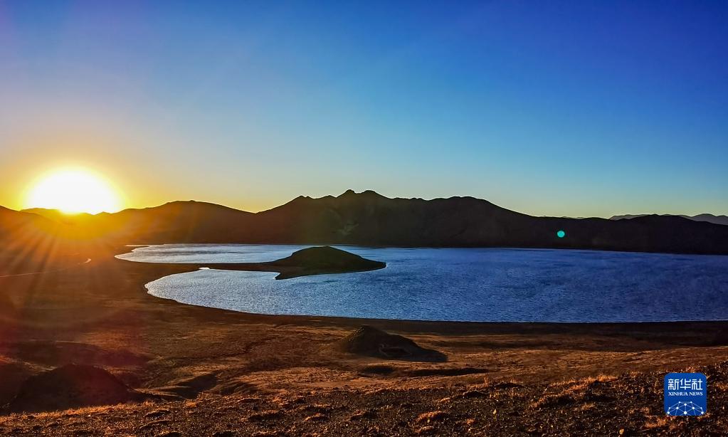 這是夕陽(yáng)下的羊卓雍錯(cuò)(12月11日攝)。新華社記者 沈虹冰 攝