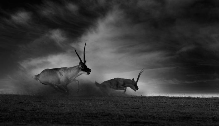 圖為焦生福作品《角逐》。 青海省祁連山自然保護(hù)協(xié)會(huì)供圖