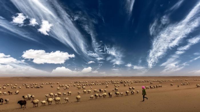 圖為焦生福作品《穿越沙漠的羊群》。 青海省祁連山自然保護(hù)協(xié)會(huì)供圖