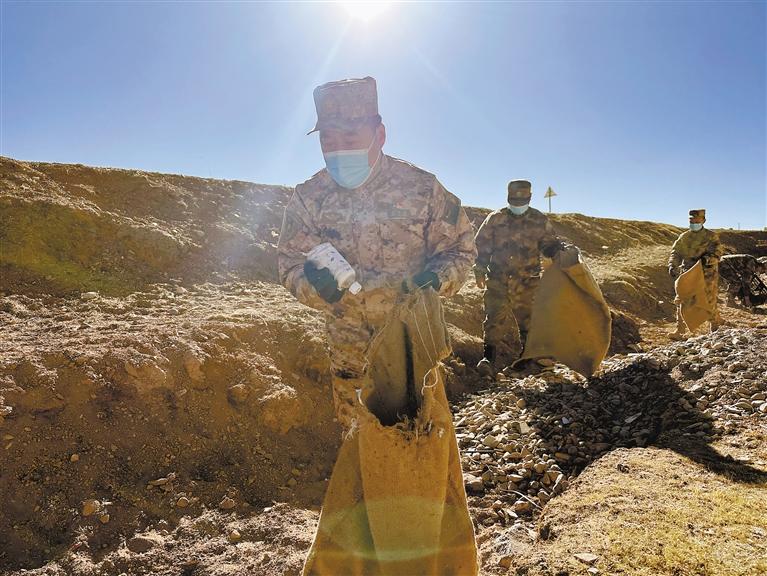 圖為安多縣武裝部官兵在河道沿岸撿拾垃圾,時刻守護(hù)著安多縣美麗生態(tài)環(huán)境。 記者 高玉潔 卞琳琳 攝
