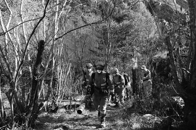 巡護(hù)在喜馬拉雅山脈南麓的森林消防隊(duì)員