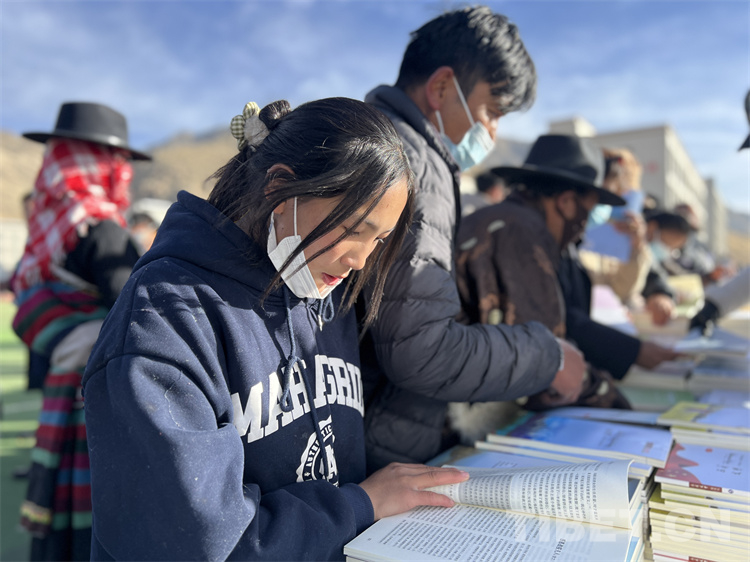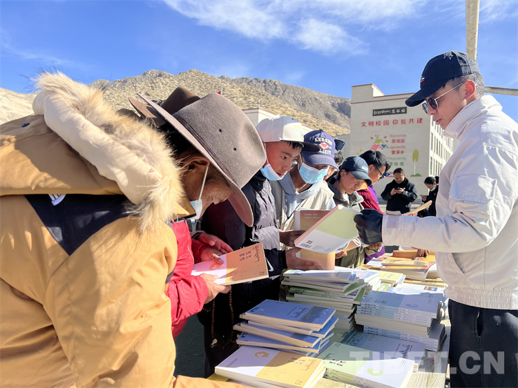 在送“書籍” 現場,《西藏文學》《西藏文藝》《邦錦梅朵》三個編輯部工作人員為現場群眾和當地干部贈送書籍,當地群眾和學生們紛紛前來翻看尋找自己喜歡的書籍,大家人手幾本書。“我平時喜歡閱讀藏文文學作品,這次要了兩本文學相關書籍拿回家閱讀”17歲的益西巴珍說。據了解,此次活動西藏文聯向熱愛閱讀的群眾和學生共贈送1500本(冊)文藝書籍和期刊。
