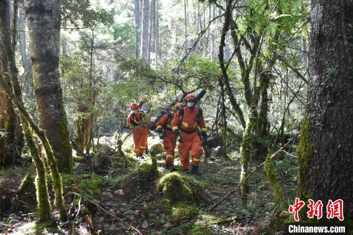 圖為林芝森林消防組成巡護分隊深入林區排查隱患?!±顕鵂c 攝