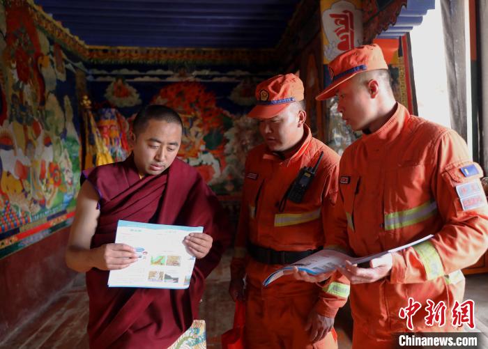 “景區內的宗教寺廟木質結構比較多,周圍森林資源豐富,平時要注意用火安全,防止火災發生。”這是林芝市森林支隊消防員正在為德木寺景區工作人員和僧人宣傳森林消防安全常識。