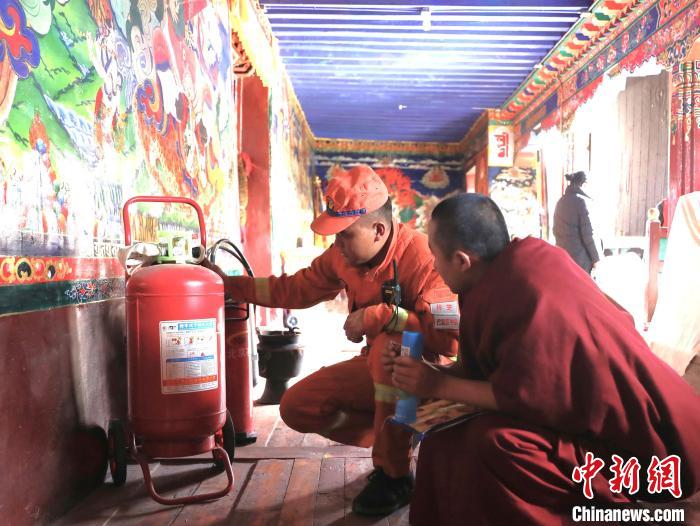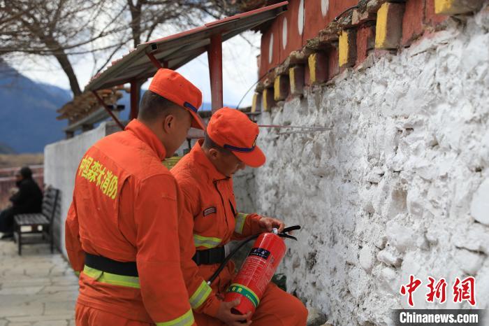 森林消防隊員正在排查寺廟火災隱患。 西繞拉翁 攝