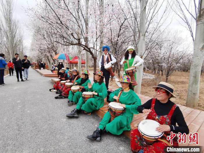圖為一支樂隊在杏花林表演。 張?zhí)砀?攝