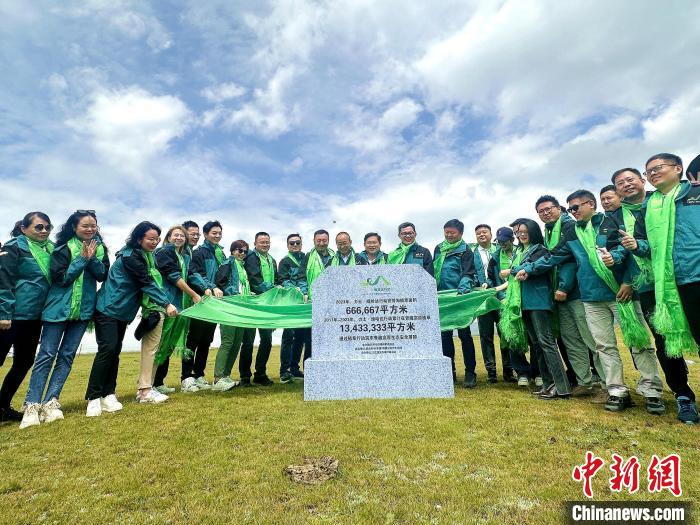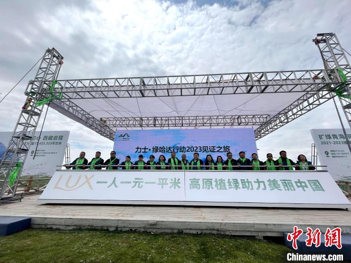 當日,“力士·綠哈達行動”2023年草場見證儀式在青海省海南藏族自治州貴德縣拉西瓦鎮巴卡臺草原舉行。來自中國各地的企業代表以“一人一元一平米”的形式,共同參與到青藏高原生態保護中。
