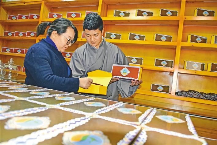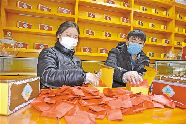 穹布倉大學生創業者正在包裝藏藥蟲草茶。