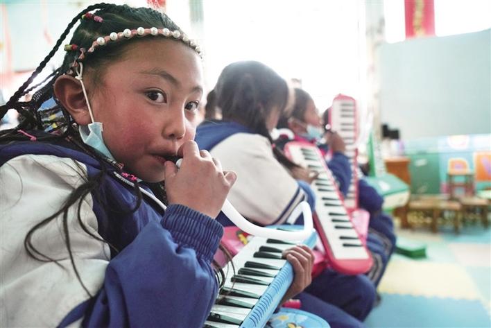 口風琴擁有良好的和聲能力,廣泛應用于各類音樂中。但是,對于果組小學的孩子們來說,這是他們第一次見到口風琴。布扎西是該小學三年級的一名小學生,他是校園“小歌星”,每年六一兒童節學校舉行文藝匯演時,他都要演唱自己的拿手歌曲——《我的家鄉》。第一次見到口風琴,布扎西非常開心:“謝謝柏雪老師送給我們的禮物,我以后會好好學習,爭取早日吹奏《小星星》!”
