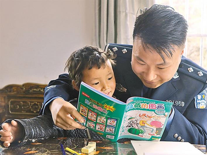 4月22日,西藏林芝邊境管理支隊米林縣南伊邊境派出所網格民警高泓淋和往常走訪時一樣,將兒童圖書認真和藹地讀給白瑪旺姆,還專門為她送去了書包、文具和兒童圖書。