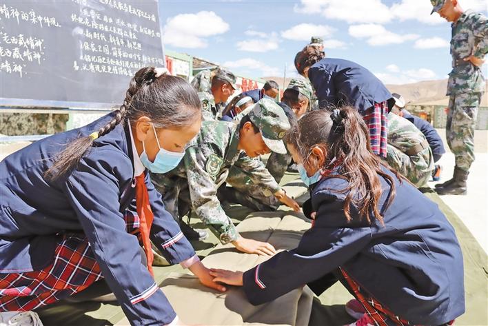 近日,西藏軍區(qū)某合成旅組織開展“軍營(yíng)開放日”主題活動(dòng),邀請(qǐng)駐地小學(xué)生參觀軍營(yíng)。開放日當(dāng)天,官兵們分小組帶領(lǐng)同學(xué)們參觀榮譽(yù)室,體驗(yàn)整理內(nèi)務(wù)等,并為同學(xué)們上了一堂精彩的國(guó)防教育課,進(jìn)一步增強(qiáng)同學(xué)們的國(guó)防意識(shí)。