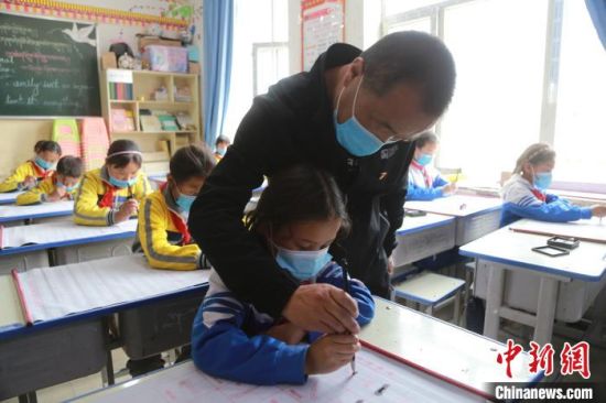 圖為鄉村學校少年宮的孩子們在老師的指導下練習書法。 才讓本 攝