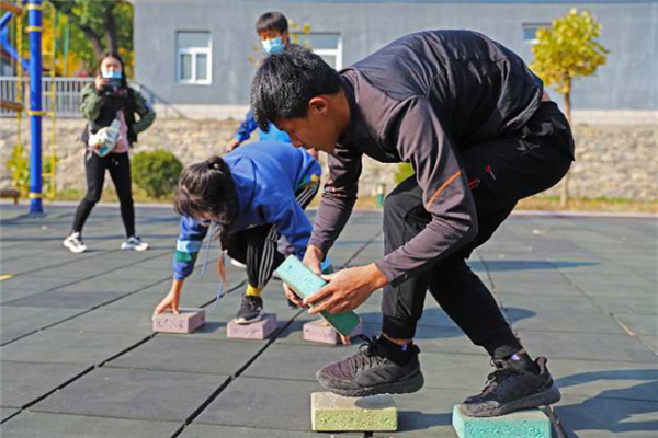 以“挑戰(zhàn)自我,熔煉團隊”為主要理念的拓展運動,在“樂動會”、“以問題為本”、“冒險體驗”、“全適能”等教育理念支撐下,按照“體能消耗適中、心理挑戰(zhàn)較大、團隊熔煉為主”的思路,設(shè)計成體育課的一個專項,通過一系列全新的“項目游戲”設(shè)計,讓學生“玩起來、樂起來、動起來”。并通過“小游戲,大道理”進行引導(dǎo)反思,幫助學生掌握身體健康、心理健康和社會適應(yīng)等方面的知識和技能,成為體育與教育完美結(jié)合的新模式。