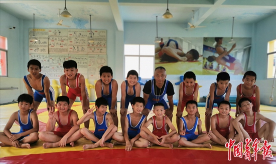 校長朱志輝和他的麻小摔跤隊(duì)。中青報(bào)·中青網(wǎng)記者 陳卓瓊/攝