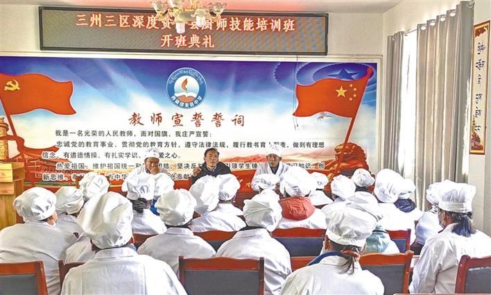 為提高農牧民群眾的勞動技能,拓寬就業渠道,日前,西藏山南措美縣教育局組織中小學校廚師、建檔立卡貧困戶50人,開展了為期5天的三區三州職業教育廚師技能培訓。