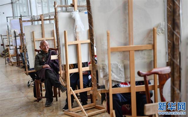 嘎瑪?shù)吕绽先嗽谖鞑夭际锌ㄈ魠^(qū)嘎瑪鄉(xiāng)的民族手工藝培訓基地里教學員們畫唐卡(10月3日攝)。新華社記者 普布扎西 攝