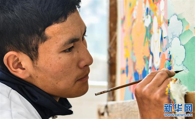 在西藏昌都市卡若區(qū)嘎瑪鄉(xiāng)的民族手工藝培訓基地,學員在學習畫唐卡(10月3日攝)。新華社記者 普布扎西 攝