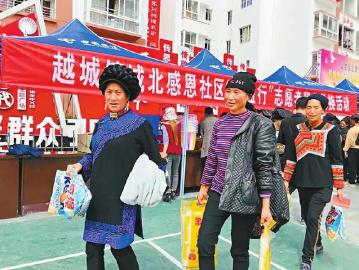 越西縣城北感恩社區舉辦的青春扶貧超市“互益行”積分行動。