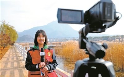 “金秋時節,聽說清水河又飛來了白天鵝,我們特意來到河邊探訪一下……”太師屯鎮中心小學校園電視臺小記者實地采訪、精心錄制,專題節目《守護天鵝》通過校園電視臺向師生及家長播出。樊世剛 攝