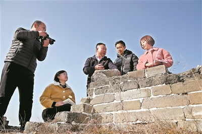 “讓每一塊城磚開口,讓每一處遺址說話。”古北口鎮中心小學校長徐國文(左三)帶領教師把教研活動搬到了長城上,探討如何打破課程設置“壁壘”,在考察、尋訪、探究、實踐中培養學生堅毅品格。樊世剛 攝