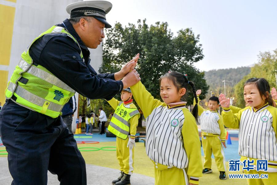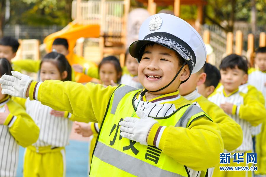 11月30日,浙江省湖州市長興縣龍山幼兒園的孩子們在學習交通指揮手勢。在12月2日“全國交通安全日”即將到來之際,各地舉行了形式多樣的教育活動,讓孩子們在趣味活動中樹立交通安全法治意識,養(yǎng)成文明出行好習慣。新華社發(fā)(譚云俸 攝)