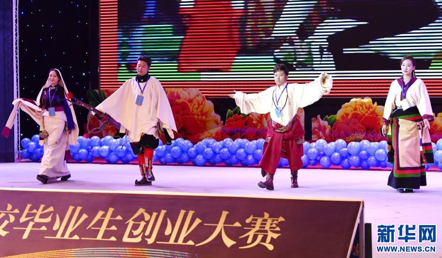 演員在西藏那曲第二屆高校畢業生創業大賽決賽現場表演(11月30日攝)。新華社記者 張汝鋒 攝
