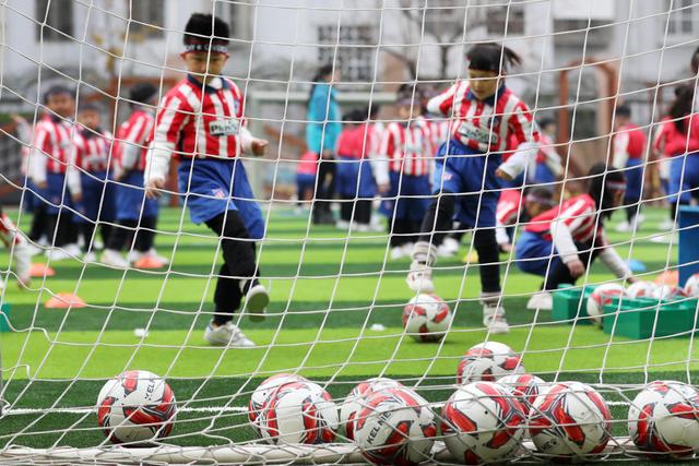 12月7日,淮北市第二實(shí)驗(yàn)幼兒園的小朋友在足球課上學(xué)習(xí)踢足球。安徽省淮北市第二實(shí)驗(yàn)幼兒園是一所“全國(guó)足球特色幼兒園”。該園把足球列入幼兒園體育課教學(xué)內(nèi)容,通過(guò)開(kāi)設(shè)幼兒足球趣味練習(xí)、足球游戲等特色課程,向孩子們傳授足球基本知識(shí)和技巧,從小培養(yǎng)孩子們對(duì)足球的興趣,讓他們感受足球運(yùn)動(dòng)的魅力,健康快樂(lè)成長(zhǎng)。新華社發(fā)(萬(wàn)善朝 攝)