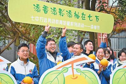 12月4日,成都七中萬(wàn)達(dá)學(xué)校首屆“添柚節(jié)”開幕?!疤龛止?jié)”覆蓋了多個(gè)年級(jí),設(shè)置了多項(xiàng)活動(dòng),并融入學(xué)科元素,如初一年級(jí)結(jié)合生物和美術(shù)學(xué)科,或用柚子做小零食進(jìn)行義賣,或在柚子上繪出不同的圖案;初二年級(jí)則結(jié)合地理和美術(shù)學(xué)科,描繪出一幅幅中國(guó)的“水果”地圖;高三年級(jí)的學(xué)生摘下柚子與老師一同品嘗豐收的味道。