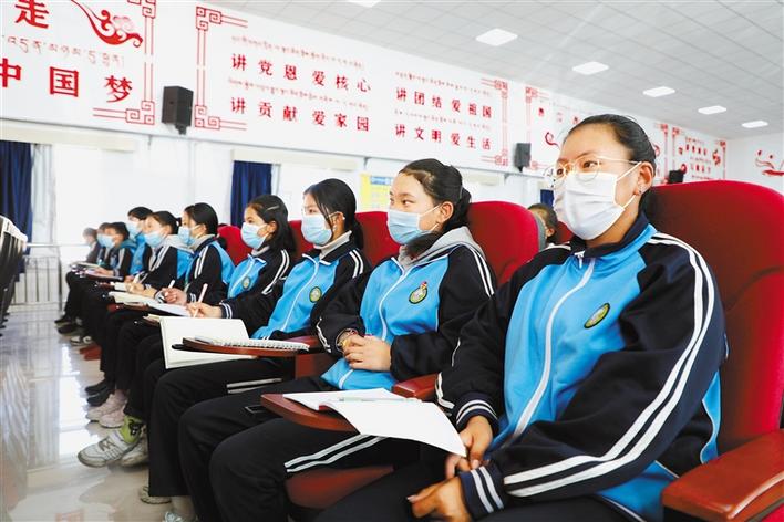 圖為學(xué)生們在認(rèn)真聆聽“四講四愛”示范宣講。溫凱 洛桑旦增 達(dá)珍 扎西羅布 攝