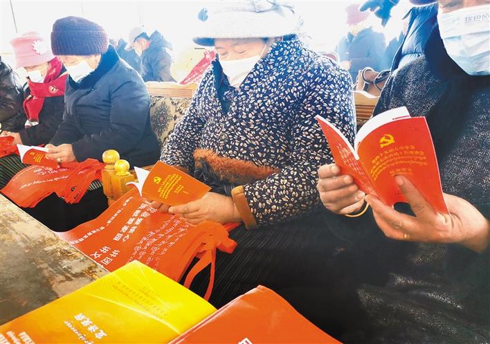圖為社區群眾在閱讀黨的十九屆五中全會和中央第七次西藏工作座談會精神宣傳資料。段敏 攝
