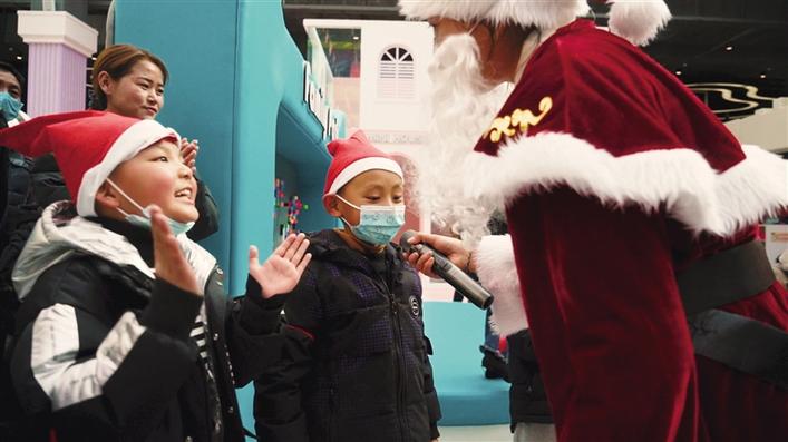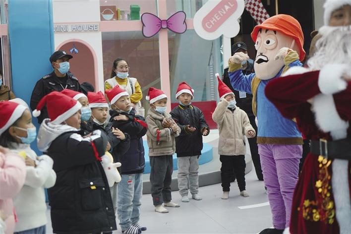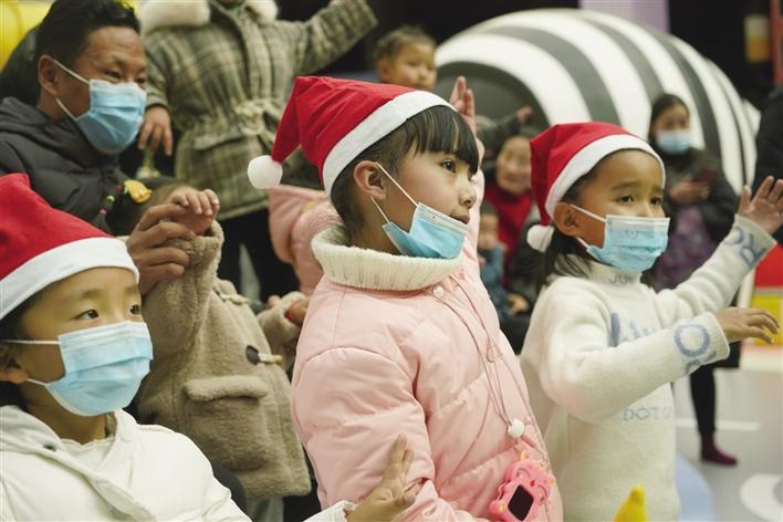 旋轉木馬、淘氣堡、滑梯……7歲的丹增達色玩得小臉紅撲撲,她告訴記者,這是她第一次來第三極歡樂世界,能和這么多小伙伴一起玩耍,真得很開心?!敖裉煊羞@么多叔叔阿姨們陪我們一起唱歌、跳舞,還送了我們小禮物,我很喜歡?!钡ぴ鲞_色笑著說。