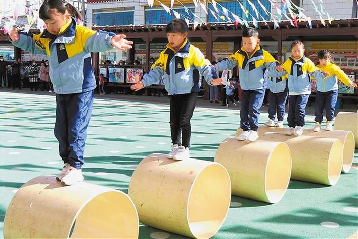 圖為山南市實驗幼兒園的孩子在表演滾輪節目。巴桑旺姆 攝