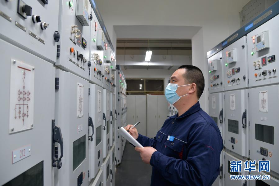 2月9日,北京交通大學后勤集團水電保障中心職工劉帥帥在主校區主配電室配電中心查看高壓配電柜。新華社記者 徐欽 攝